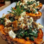 Irresistible Stuffed Sweet Potatoes with Spinach Mushroom Feta