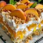 Unbeatable Texture: The science behind this Heavenly Summer Peach Cobbler Poke Cake Recipe’s texture comes from the interaction between the warm cake and the hot peach mixture, which allows the sugars to form a light caramelization on the surface while keeping the interior tender. The crumbly topping, made with melted butter and flour, achieves its golden crispiness through even baking, as the fats in the butter solidify slightly upon cooling, creating a contrast that enhances the overall mouthfeel of this peach-infused poke cake.
