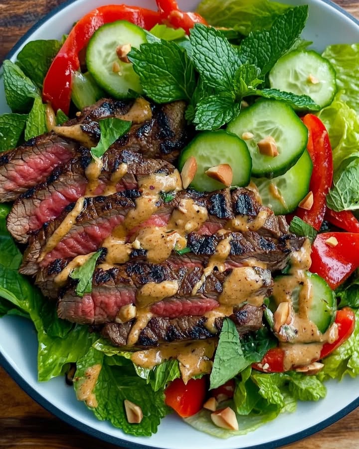 This Thai-Style Grilled Steak Salad brings together vibrant Southeast Asian flavors with juicy grilled beef. Imagine tender slices of steak tossed with crisp vegetables, fresh herbs, and a zesty lime dressing. The result is a dish that balances spicy, sweet, sour, and savory notes in every bite.