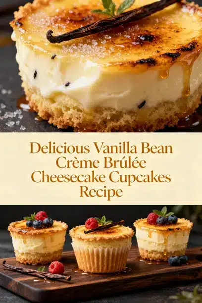 In under 50 words: Indulge in these delicious vanilla bean crème brûlée cheesecake cupcakes—creamy, crunchy, and vanilla-infused perfection. Ready in 2 hours prep-ahead, they’re a fusion dream. Now, try it! Share your takes in the comments or reviews, and subscribe for more epic recipes. Your baking adventure awaits!