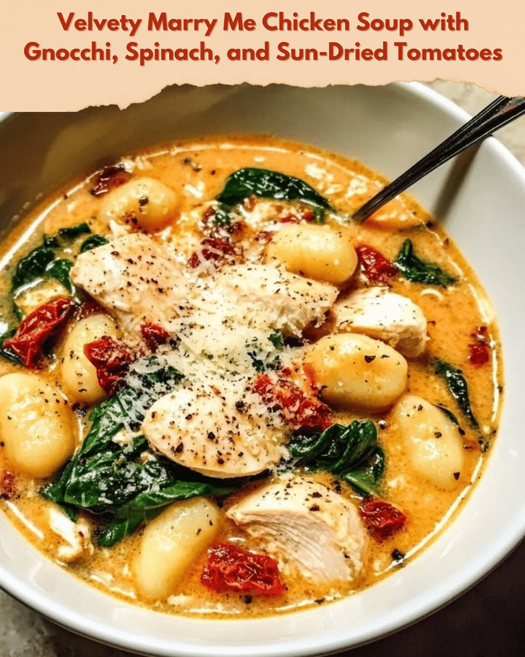 Velvety Marry Me Chicken Soup with Gnocchi, Spinach, and Sun-Dried Tomatoes